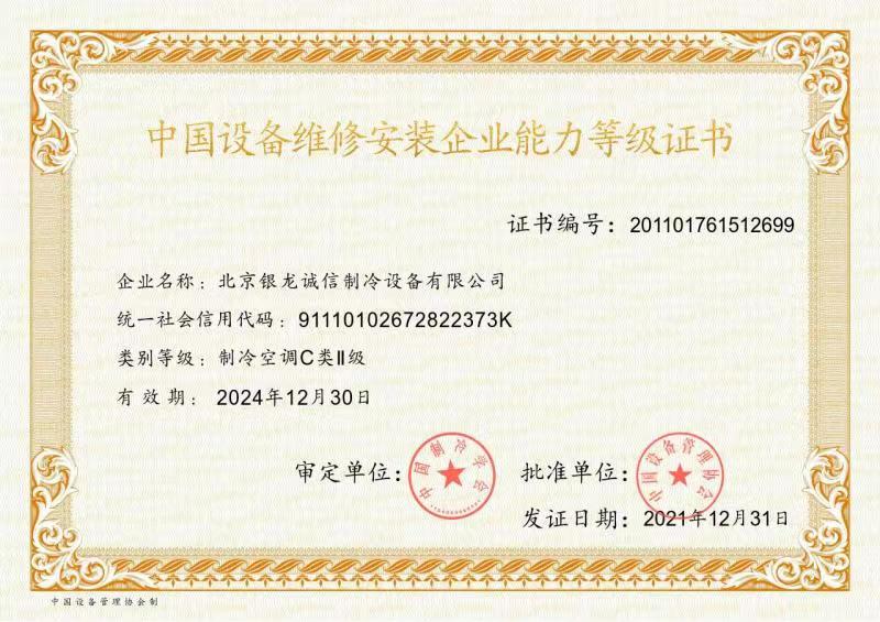 2007年:獲準成為北京市制冷行業(yè)技術學會理事單位; 2009年:獲得北京市大興區(qū)百強企業(yè)認證; 2009年:獲得國家高新技術企業(yè)認證; 2011年:獲北京市安全生產先進企業(yè)稱號,節(jié)能環(huán)保先進單位; 2012年:通過了國家高新技術企業(yè)復審; 2013年:公司董事長獲"2013北京先進企業(yè)家"榮譽稱號; 2014年:獲2014年度中國冷庫工程安裝設計造價行業(yè)十大品牌;